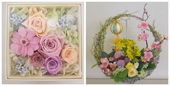 プレート使ったリース、お雛様アレンジ、BOXアレンジほか、皆さんお好きなものを制作していただきました。